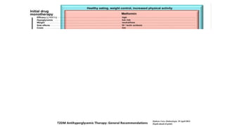 Este documento presenta el caso clínico de una paciente de 59 años que acude a consulta por dolor abdominal, debilidad y otros síntomas. Tras realizar exámenes físicos y de laboratorio, se diagnostica que la paciente padece diabetes mellitus tipo 2, enfermedad crónica caracterizada por niveles altos de glucosa en sangre. Los factores de riesgo de la paciente incluyen obesidad, hipertensión y antecedentes familiares de diabetes.