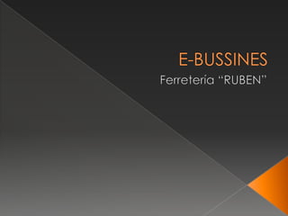 Este documento describe la implementación de un punto de venta en línea para la ferretería Rubén. Se decidió implementar e-commerce debido al crecimiento de Internet. Se compró hardware Acer y software de inventario, almacén y control de activos por $3000. También se compró un dominio y hosting con opciones de página web por $2500 inicial y $19.50 mensuales. El sistema permite realizar pedidos, llevar inventario con códigos de barras y ofrecer entrega a domicilio.