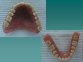 Este documento presenta cuatro casos clínicos de pacientes adultos que recibieron tratamiento odontológico. Incluye los datos y antecedentes de cada paciente, su motivo de consulta, fotografías, detalles del tratamiento realizado como impresiones, modelos, protesis u otros procedimientos, y fotografías del resultado final. Los tratamientos incluyeron protesis removibles e implantadas, coronas y mantenedores de espacio en niños.