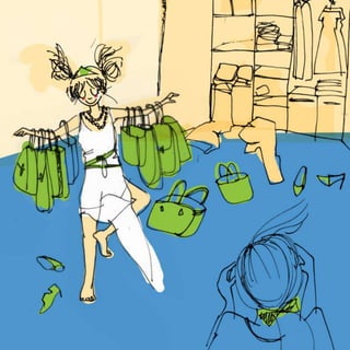 El documento presenta una historia corta de tres oraciones sobre una niña llamada Melisa que le encanta usar accesorios de piel de cocodrilo. En su cumpleaños, un personaje fantástico le regala un cocodrilo vivo. Luego, el cocodrilo decide que la piel de Melisa sería decorativa para sus propios accesorios, dando un giro oscuro a la historia.