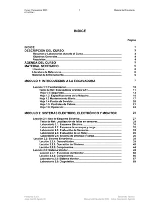Este módulo introduce al estudiante a la excavadora 365C, cubriendo la familiarización con la máquina, ubicación de componentes principales, controles de cabina y operación básica. Incluye normas de seguridad, especificaciones técnicas, puntos de servicio, mantenimiento diario y laboratorios prácticos en la máquina para reforzar los conceptos aprendidos.