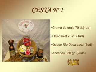Cantabria Exquisita ofrece una variedad de cestas navideñas que contienen diferentes combinaciones de quesos, anchoas, cremas de orujo y otros productos típicos de Cantabria, como corbatas de Unquera. Las cestas incluyen de 1 a 11 artículos y ofrecen opciones para diferentes gustos y presupuestos.