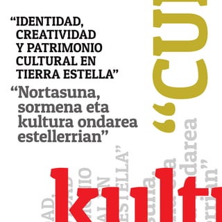 El documento describe la organización de una exposición cultural por la asociación Teder en la comarca de Tierra Estella, enfocándose en la identidad, creatividad y patrimonio de sus localidades. Se presenta un total de 22 obras artísticas realizadas con la colaboración de los habitantes, reflejando su conexión con la cultura y el entorno local. La exhibición destaca la importancia del patrimonio cultural y el compromiso de la comunidad en su conservación y difusión.