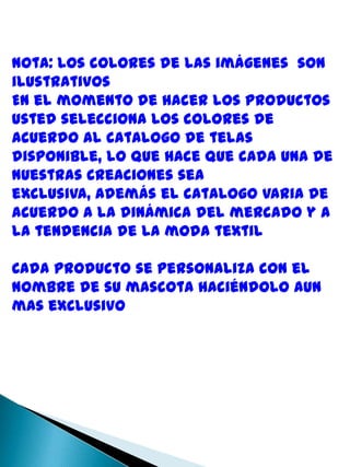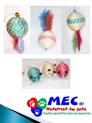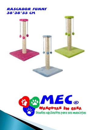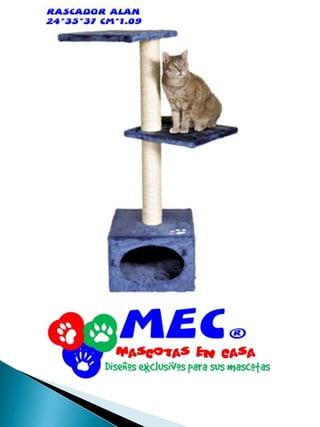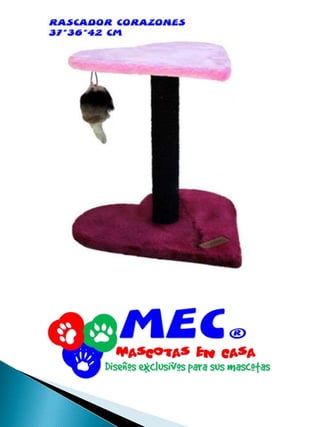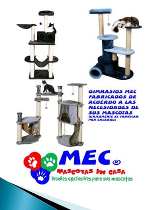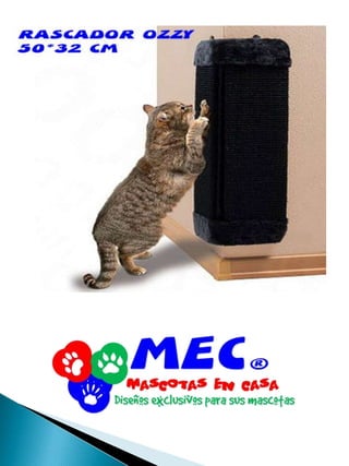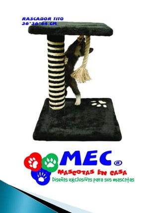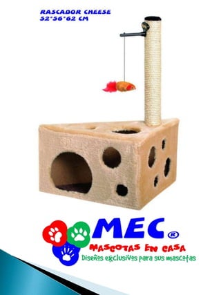 Este documento describe varios productos para mascotas como camas, iglús, raspadores y juguetes elaborados con telas y materiales de alta calidad. Se ofrecen diferentes tamaños y estilos para gatos, perros pequeños y medianos/grandes. Los clientes pueden seleccionar el modelo, tela y personalizarlos con el nombre de su mascota. Los productos están diseñados para proporcionar comodidad y ser un refugio para las mascotas.