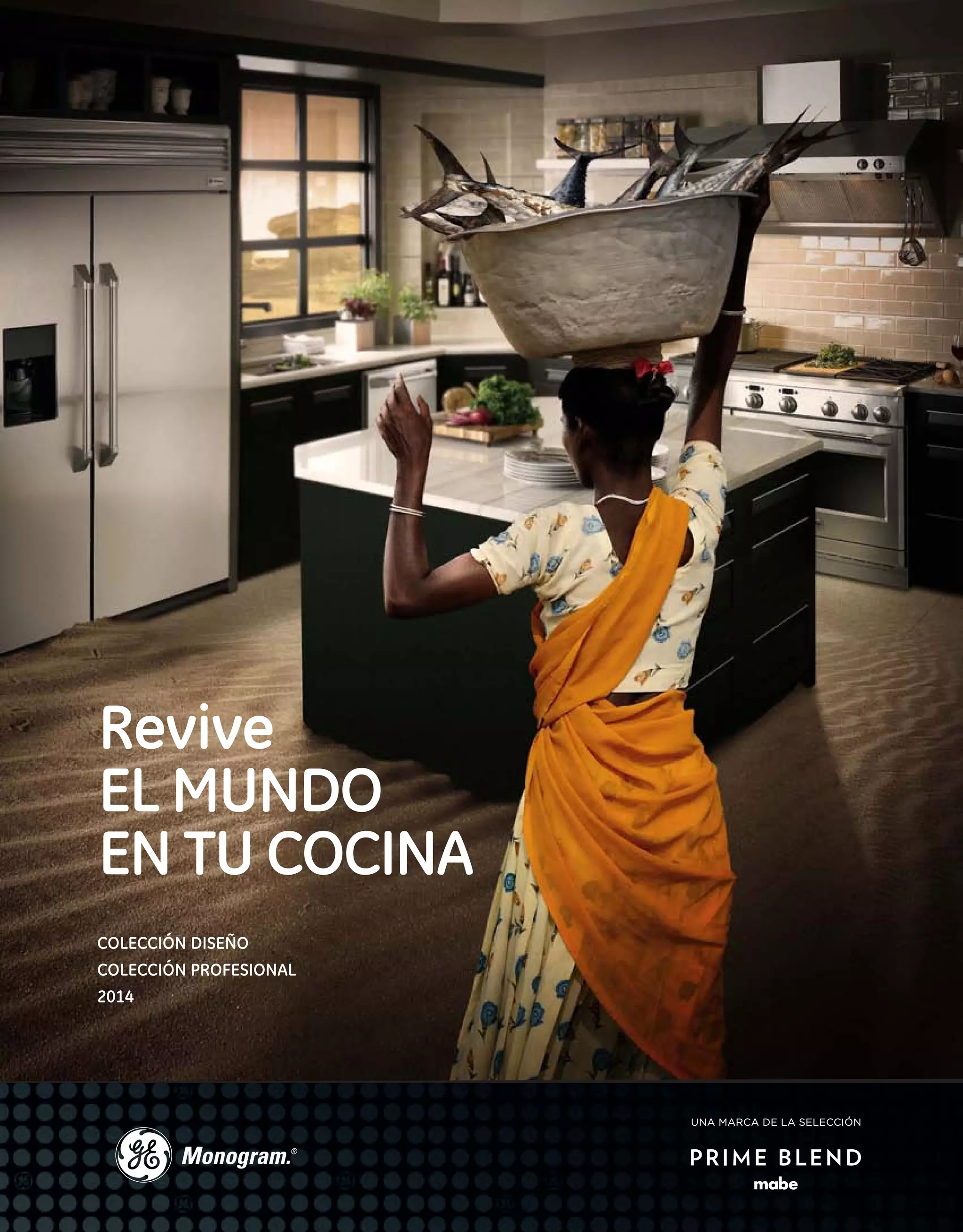 Este documento presenta una colección de electrodomésticos de cocina de la marca Monogram para 2014. Incluye refrigeradores, cavas de vinos, centros de bebidas, estufas, hornos y accesorios. Describe las características y especificaciones de cada producto, así como sus diferentes colecciones de diseño, profesional y empotrables. El objetivo es ofrecer soluciones integrales de cocina con productos de alta calidad y rendimiento.