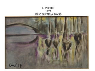 Este documento lista los títulos, fechas, materiales y dimensiones de las obras de arte de un artista a lo largo de varios años desde 1977 hasta 1989. Incluye pinturas al óleo, acuarelas y témperas de temas como naturalezas muertas, paisajes, retratos y autorretratos.