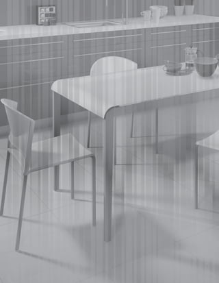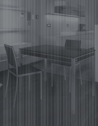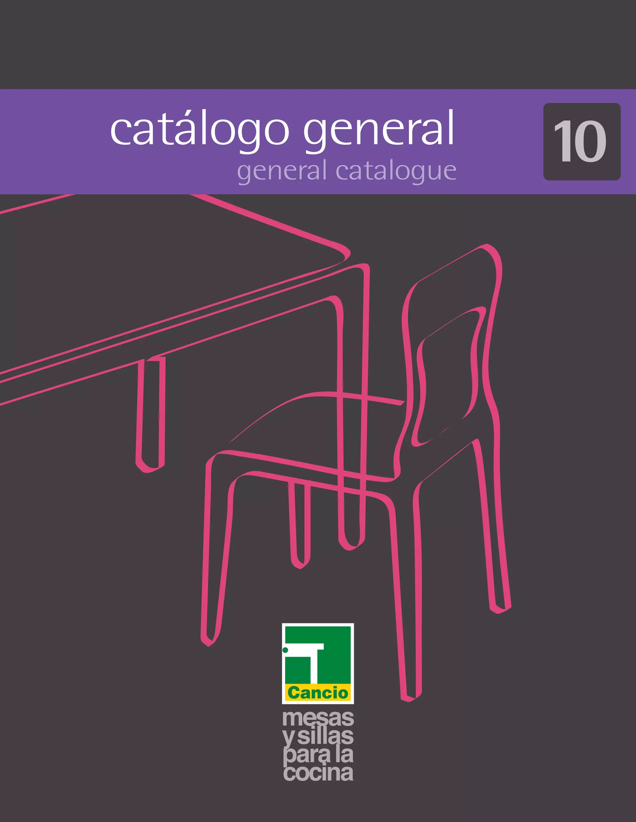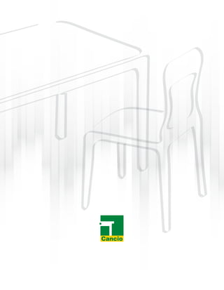 El documento presenta el catálogo número 10 de una empresa. La empresa ofrece nuevos diseños, materiales, colores y acabados en sus productos. El catálogo incluye mesas, sillas y taburetes con diferentes medidas y estilos para ayudar a los clientes a elegir lo más adecuado para su exposición. La empresa ha estado operando desde 1959 y está comprometida con la más alta calidad.