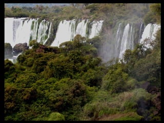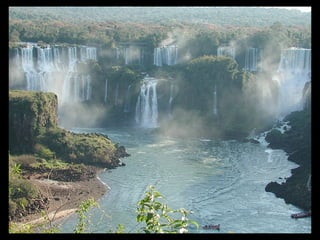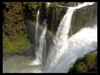 Las cataratas del Iguazú se encuentran en la provincia de Misiones en Argentina y forman frontera con Brasil. Están formadas por 275 saltos de agua de hasta 80 metros de altura provenientes del río Iguazú. En 1984 y 1986, los sectores argentino y brasileño de las cataratas fueron nombrados Patrimonio de la Humanidad por la UNESCO.