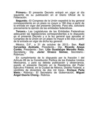 El Congreso General de los Estados Unidos Mexicanos aprobó una adición a la Constitución Política de los Estados Unidos Mexicanos para armonizar y homologar la organización y funcionamiento de los registros públicos inmobiliarios y de personas morales de las entidades federativas y los catastros municipales. El Presidente Enrique Peña Nieto publicó el decreto que aprueba esta adición constitucional. El Congreso de la Unión tendrá 180 días para expedir una ley general al respecto y las legislaturas estatales 60 días para adecuar sus leyes.