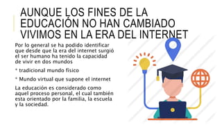 Este documento describe los nuevos aspectos clave del paradigma educativo para la era de Internet. Estos incluyen el desarrollo intelectual a través del pensamiento crítico y creativo, la competencia en aprender a aprender mediante la lectura, comprensión e interpretación, y el autoconocimiento y la inteligencia emocional a través del conocimiento de las propias fortalezas y debilidades.
