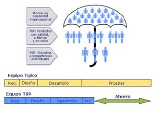 Este documento discute los desafíos de Agile y PSP. Algunos desafíos de Agile son que los clientes no siempre tienen tiempo para reuniones y pruebas, las versiones frecuentes pueden percibirse como baja calidad, y es difícil hacer estimaciones realistas. PSP se enfoca en mejorar la planeación individual mediante el seguimiento de métricas, aunque no es la solución para todo y requiere adaptación. El documento también cubre temas como la medición de tamaño, estimación de esfuerzo, y planeación de pro