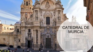 La Catedral de Murcia data del siglo XIV y es un edificio importante de estilo gótico, renacentista y barroco. Su torre del campanario de 93 metros de altura fue construida en diferentes etapas desde el siglo XVI hasta el XVIII y es la tercera más alta de España. El interior de la torre alberga varios estilos arquitectónicos a lo largo de sus cuatro cuerpos y cuenta con campanas históricas.