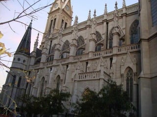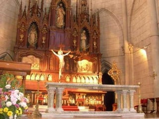 La Catedral de los Santos Pedro y Cecilia en Mar del Plata, Argentina fue inaugurada en 1905 después de ser diseñada y construida por el arquitecto Pedro Benoit. Es la tercera catedral más grande de la provincia de Buenos Aires y cuenta con vitrales, altares y órganos destacados. Dentro se observan la nave central y laterales cubiertas con bóvedas de crucería, y a lo largo de las naves laterales hay cuadros del Vía Crucis.