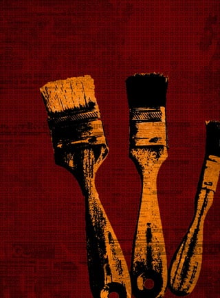 Este catálogo presenta una variedad de materiales y herramientas para arte, incluyendo espátulas, lápices, óleos, acuarelas, colores pastel, pinceles, brochas, accesorios y solventes. El documento contiene imágenes y descripciones de decenas de productos organizados en diferentes categorías, con sus respectivos códigos y precios.