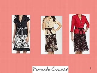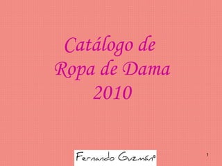 El documento es un catálogo de ropa para dama del año 2010. Incluye información de contacto como correos electrónicos y números de teléfono. También se proporciona un enlace a la página de Facebook para más detalles.