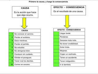 El documento presenta una lista de acciones potenciales con espacios en blanco para que se escriban las causas y consecuencias correspondientes, con el objetivo de que el lector complete la lista identificando diferentes acciones y sus resultados asociados.