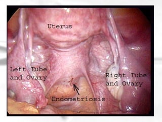 Este documento presenta 4 casos clínicos relacionados con causas de hemorragia genital femenina. El primer caso trata sobre una paciente con síndromes de Cushing y ovario poliquístico. El segundo caso describe un quiste hemorrágico en el ovario. El tercer caso involucra miomas uterinos como causa de sangrado anormal. Finalmente, el cuarto caso presenta endometriosis como diagnóstico probable para dismenorrea severa.