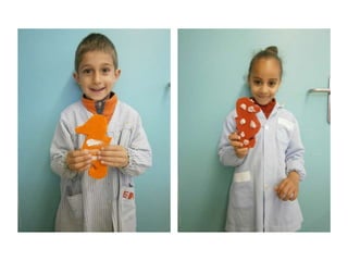 Los niños aprendieron varias cosas sobre los caballitos de mar a través de un proyecto de investigación. Algunos puntos clave incluyen: los caballitos de mar vienen en muchos colores como naranja, blanco y rosa; viven en aguas cálidas cerca de rocas y algas; respiran a través de branquias y boquean para exhalar burbujas; se camuflan entre las algas para protegerse de los depredadores; y se alimentan chupando plancton y pequeños animales marinos.