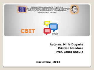 El documento describe lo que es un Centro Bolivariano de Informática y Tecnología (CBIT), sus objetivos y funciones. Un CBIT es un espacio educativo dotado de recursos tecnológicos para formar estudiantes, docentes y la comunidad. Su objetivo es promover el uso pedagógico de las tecnologías de la información para formar ciudadanos. Un CBIT planifica actividades docentes y gestiona convenios con universidades y empresas. Beneficia a estudiantes, docentes y la comunidad en general.