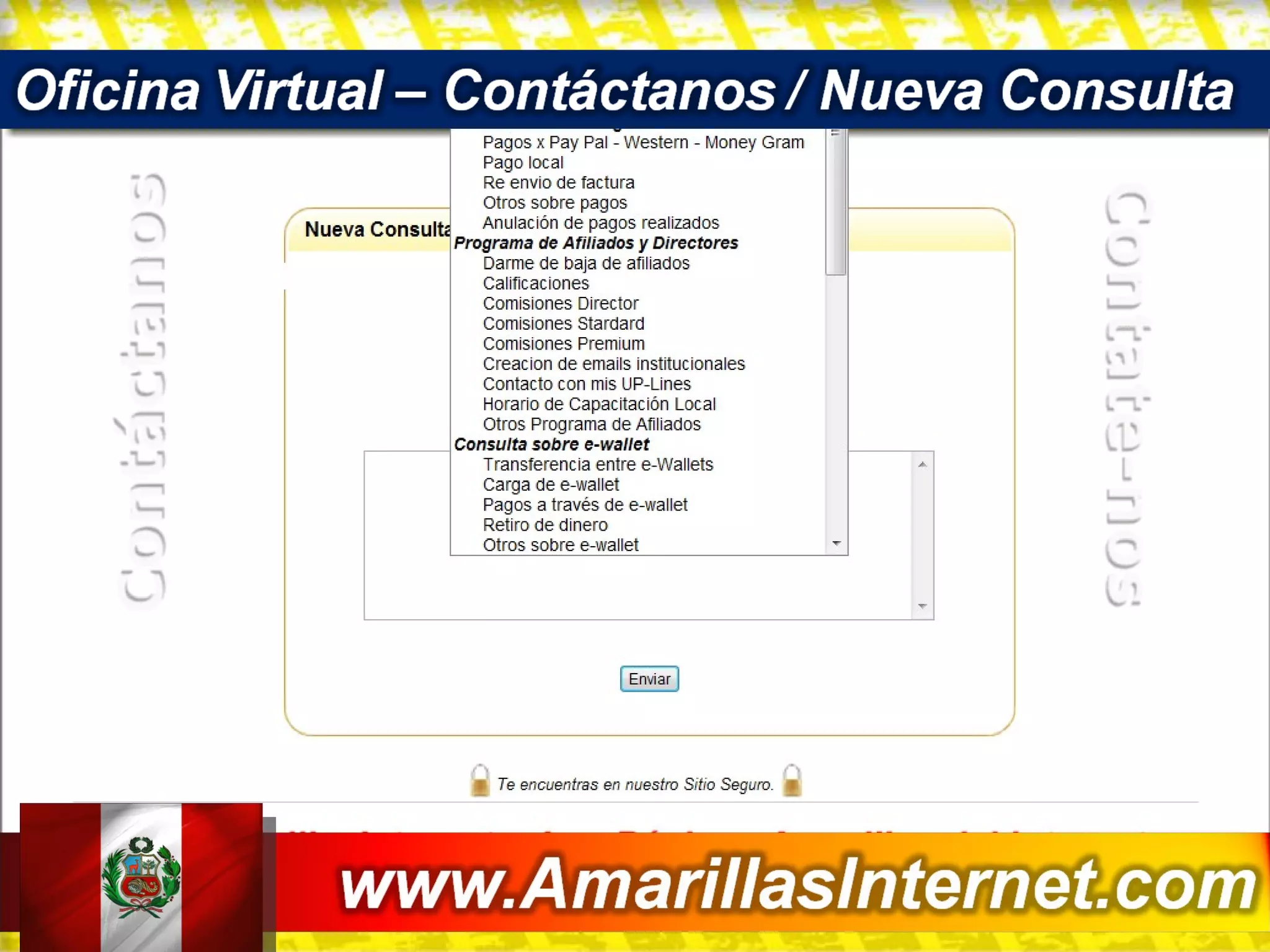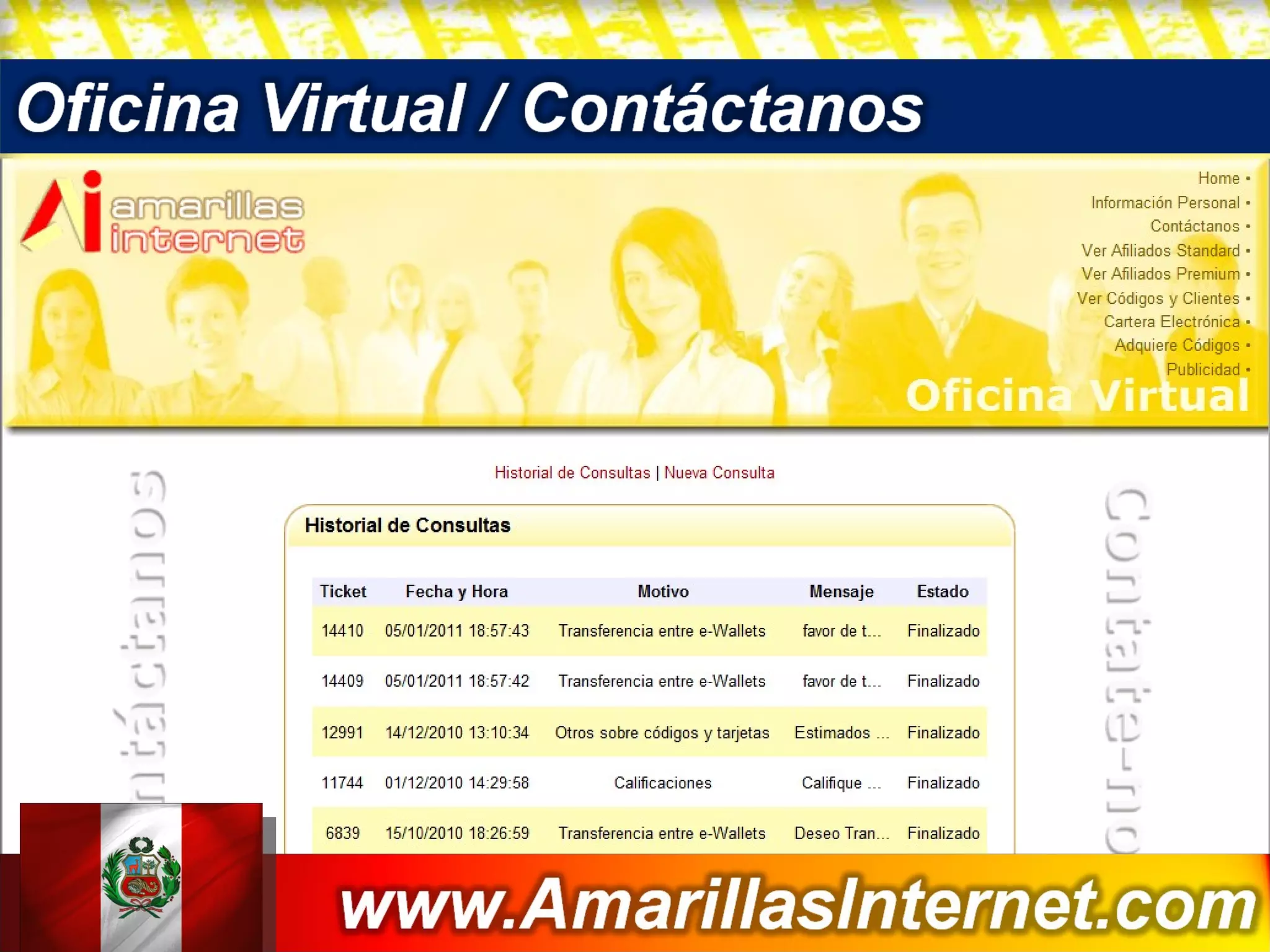 Este documento proporciona información de contacto de la compañía Amarillas Internet Perú, incluyendo su número de teléfono, correo electrónico, sitio web, horario de atención, dirección física y detalles de cuenta bancaria para activaciones.