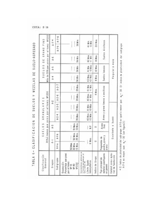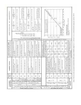 Este documento presenta definiciones y símbolos utilizados en la mecánica de suelos. Incluye términos como arcilla, arena, grava, contenido de humedad, límites de Atterberg, y más. Explica conceptos clave como gradación, densidad relativa, coeficientes de uniformidad y curvatura, y propiedades de los suelos como consistencia y encogimiento. El documento provee una referencia útil de términos técnicos en mecánica de suelos.