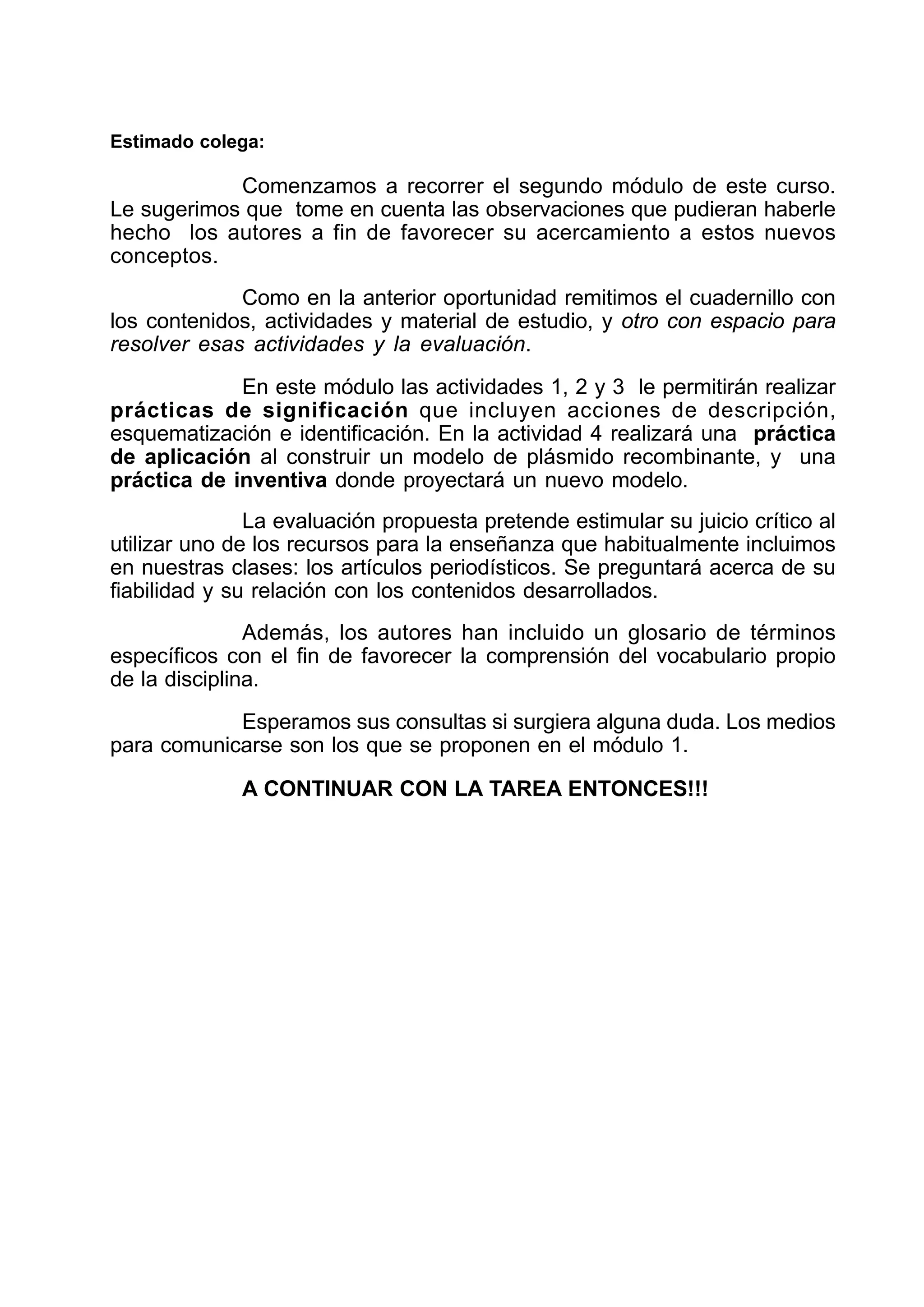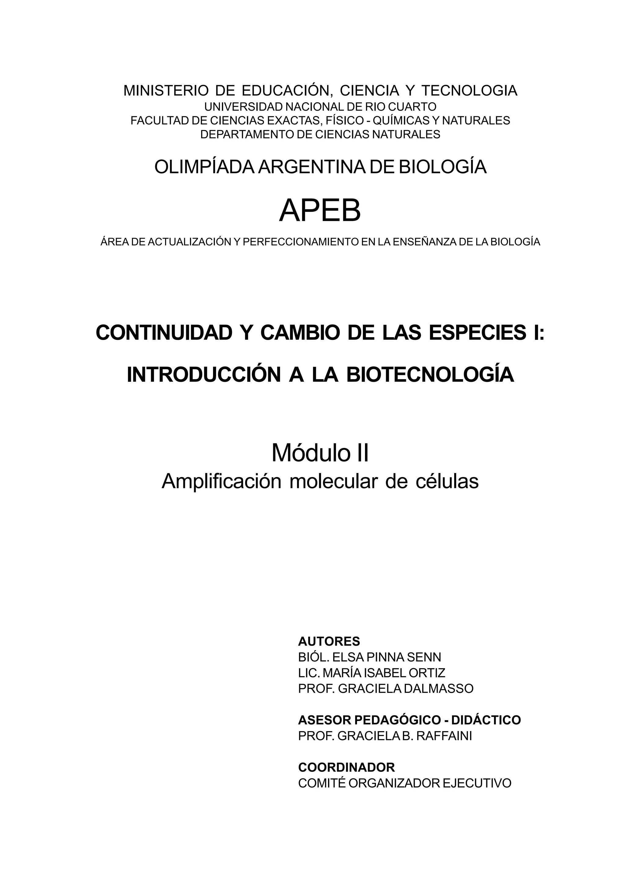 Este documento presenta el segundo módulo de un curso sobre introducción a la biotecnología. El módulo se enfoca en técnicas de amplificación molecular de células, incluyendo estrategias básicas como el clonado in vivo y el clonado in vitro. También describe diferentes tipos de vectores como plásmidos, fagos y cromosomas artificiales de levadura, y cómo se pueden utilizar para clonar DNA. El documento incluye actividades prácticas para que los estudiantes apliquen estos concept
