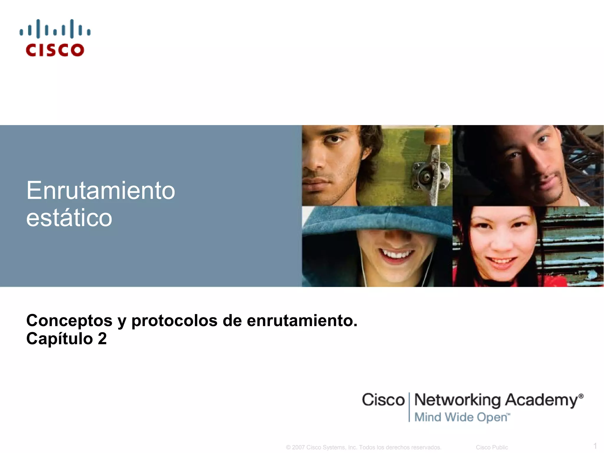 Este documento describe conceptos y protocolos de enrutamiento estático. Explica las funciones de un router, como seleccionar la mejor ruta y reenviar paquetes. Describe cómo configurar interfaces de router, rutas estáticas y el protocolo CDP. También cubre la ruta por defecto, sumarización de rutas y cómo los routers reenvían paquetes usando rutas estáticas.
