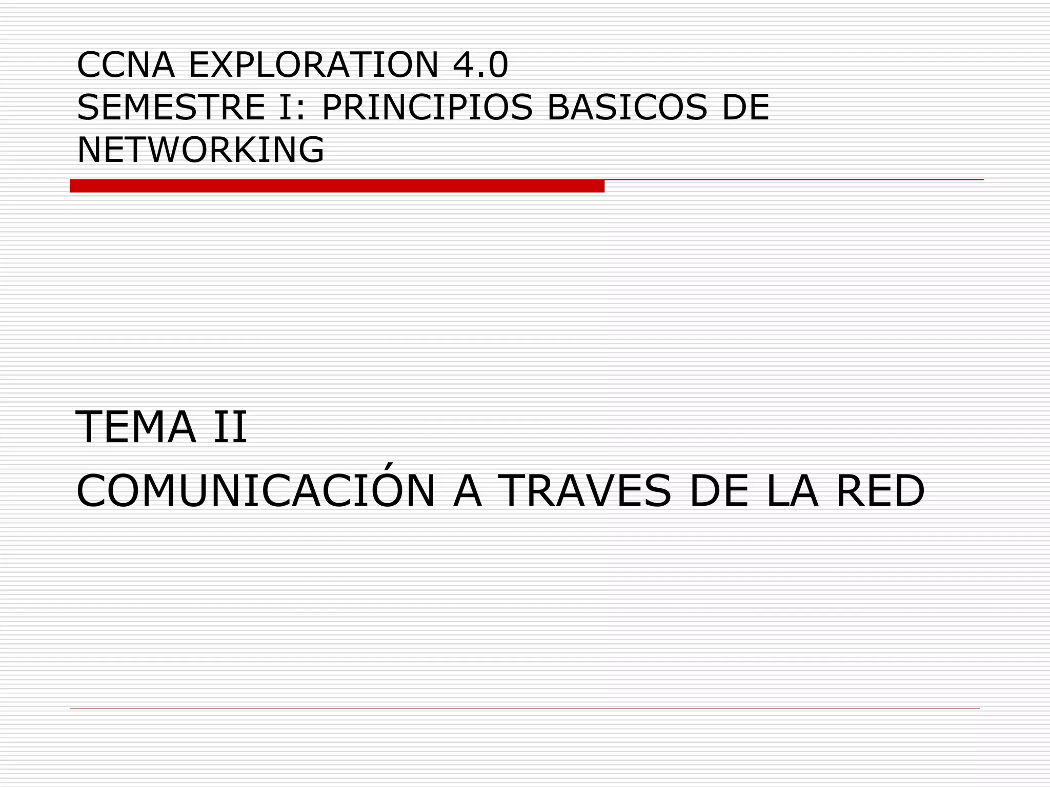 1) El documento habla sobre la comunicación a través de redes, incluyendo la segmentación de mensajes, multiplexación, y los componentes de una red como dispositivos, medios y protocolos. 2) Explica los modelos OSI y TCP/IP, el proceso de comunicación, y diferentes tipos de direccionamiento usados en redes. 3) Detalla conceptos como capas, suites de protocolos, y cómo los datos son enviados a través de la red usando direcciones en diferentes capas como MAC, IP y número de puerto.