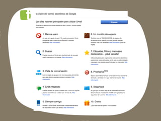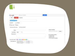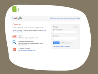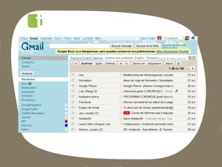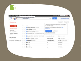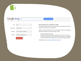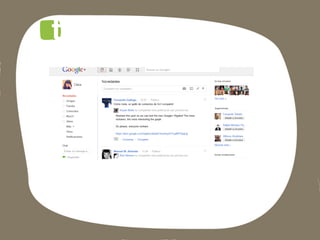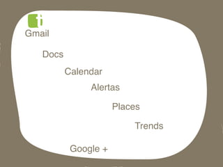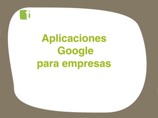 Este documento lista las aplicaciones de Google para empresas, incluyendo Gmail, Docs, Calendar, Alertas, Places, Trends y Google+, así como instrucciones para descargar una copia de seguridad de Google+.