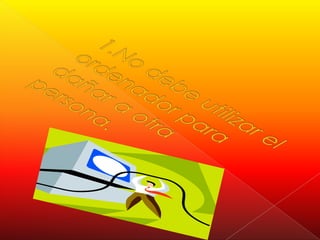 Este documento presenta un código de buena conducta para el uso de Internet. Establece 10 reglas como no dañar a otros, interferir con el trabajo de otros, robar o usar software pirateado. También indica la necesidad de respetar la propiedad intelectual de otros, considerar las consecuencias sociales de los programas y utilizar la tecnología con respeto.