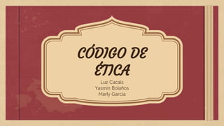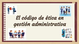 Este documento presenta un resumen del código de ética en la gestión administrativa. Define la gestión administrativa como una carrera que interviene en diferentes áreas organizacionales para mejorar procesos a través de la gestión integral. La misión es desarrollar competencias administrativas para gestionar procesos organizacionales y responder a necesidades del mercado. Se describen perfiles ocupacionales como líder organizacional, emprendedor, gestor y ejecutivo. También se destacan valores como responsabilidad, honestidad y compromiso, así como principios como mejora