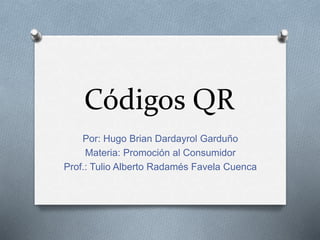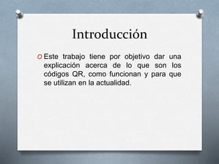 El documento explica el funcionamiento y uso de los códigos QR, creados en 1994 para facilitar el acceso a información mediante dispositivos móviles. Se destacan ejemplos de campañas publicitarias exitosas y su potencial para interactuar con los consumidores, aunque se menciona que su impacto ha sido limitado en ciertos mercados. La aceptación y eficacia de los códigos QR varía según la cultura y el país, siendo más utilizados en sociedades como la surcoreana en comparación con la mexicana.
