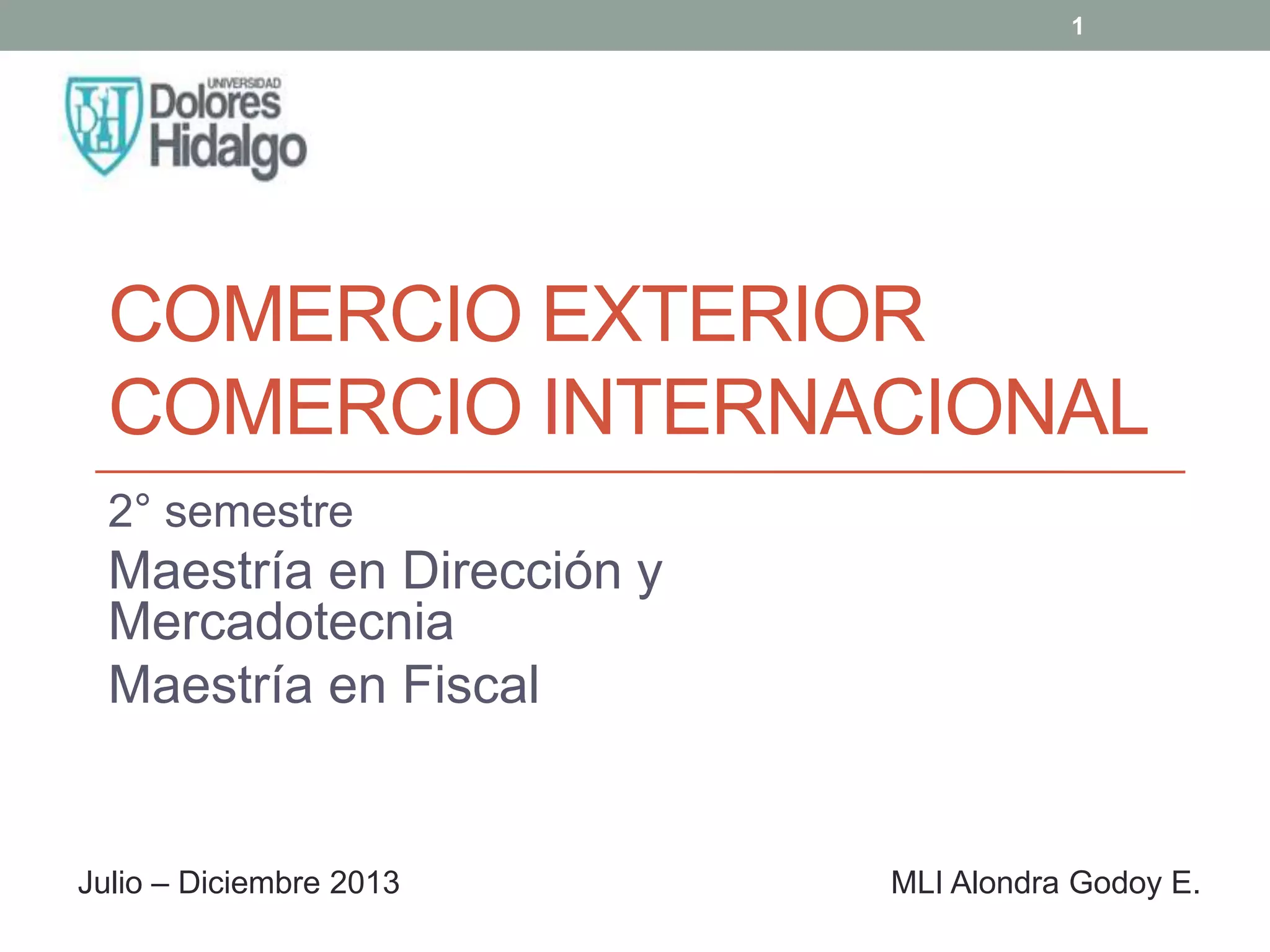 Este documento presenta información sobre dos programas relacionados con el comercio exterior e internacional. El primer programa cubre temas como la política comercial, sus objetivos e instrumentos. También analiza los efectos del libre comercio y la protección. El segundo programa revisa conceptos generales del comercio internacional como exportaciones, importaciones y enfoques del libre comercio. El documento concluye con estadísticas sobre el comercio exterior de México y las pymes.