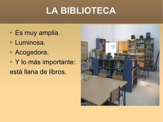 La biblioteca del colegio es amplia, luminosa y acogedora, llena de libros para que los niños puedan leer, comentar libros y aprender a moverse en una biblioteca. Esto ayuda a fomentar el hábito de la lectura, mejorar la comprensión lectora y el vocabulario, aumentar la ortografía, relacionarse con los demás y aprender jugando para ser mejores personas.