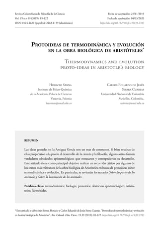 Este artículo explora las protoideas sobre termodinámica y evolución presentes en la obra biológica de Aristóteles, destacando cómo algunas de sus ideas fueron obstáculos epistemológicos que dificultaron el progreso de la ciencia. Se analizan en particular los tratados sobre las partes de los animales y la locomoción, subrayando la influencia de la tradición filosófica y científica previa a Aristóteles. El objetivo es identificar conceptos que, a pesar de su vaguedad, pueden considerarse precursores de ideas científicas más avanzadas.