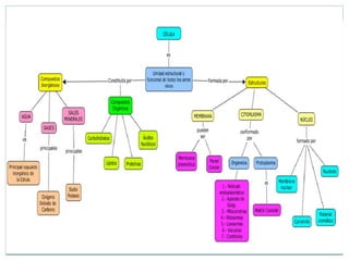 El documento describe las características fundamentales de las células. Explica que la célula es la unidad funcional y estructural básica de todos los seres vivos. Detalla las partes clave de las células eucariotas y procariotas, incluyendo la membrana celular, el citoesqueleto, el núcleo, las mitocondrias, los cloroplastos y más. También cubre conceptos como la replicación del ADN y la división celular.