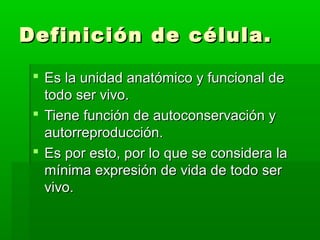 Este documento describe las diferencias entre células animales y vegetales. Las células animales tienen membrana celular, citoplasma y núcleo, mientras que las células vegetales adicionalmente tienen pared celular. El material hereditario se localiza en el núcleo de ambos tipos de células.