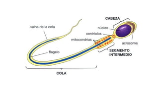 #9 Para evaluar la morfología de un espermatozoide se observan al microscopio sus tres estructuras principales: cabeza, pieza intermedia y cola