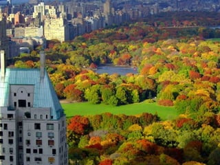 En el centro de la ciudad de Nueva York, entre los rascacielos de Manhattan, hay un parque enorme al cual lo llaman CENTRAL PARK. Este parque tiene una extensión de más de cincuenta cuadras , es tan grande que cuando se creó, en él se plantaron cinco millones de árboles, lo cual hace de varias secciones de este parque verdaderos bosques. Por su contraste con los altos edificios que lo rodean, es una de las áreas verdes más atractivas  del mundo entero.