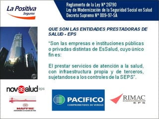 Este documento presenta la información sobre un centro de salud en Perú. Incluye una lista de cuatro integrantes del centro de salud y su ubicación. Además, describe la organización general del sector salud en Perú, incluyendo las diferentes categorías dentro del Ministerio de Salud, EsSalud, Fuerzas Armadas y sector privado. Finalmente, proporciona detalles sobre los diferentes niveles de atención en salud y tipos de establecimientos de salud.