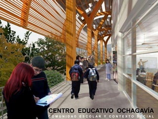 El documento presenta información sobre el Centro Educativo Ochagavía y su contexto social. Describe brevemente el contexto socioeconómico de la zona y las necesidades de la comunidad escolar. Propone la creación de un Liceo Técnico Profesional Municipal en el Centro Educativo para mejorar la educación y promover la inclusión social a través de enseñanzas técnicas que faciliten el acceso al empleo. El proyecto considera diseñar la infraestructura de manera flexible, sustentable y abierta a