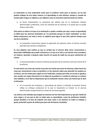 El documento analiza las concepciones de los profesores sobre el aprendizaje y cómo acceder a ellas. Se utilizó un cuestionario de dilemas basado en situaciones escolares que reflejaban diferentes teorías como la directa, interpretativa, constructiva y posmoderna. La teoría más elegida por los profesores fue la constructiva, aunque también mostraban elementos de otras teorías. La experiencia docente influye en las concepciones, pues los profesores con más práctica mostraban puntos de vista más constructivos que aquellos sin experiencia en el