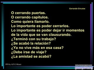Este documento habla sobre la importancia de cerrar capítulos en la vida y dejar ir momentos y situaciones del pasado. Explica que aferrarse al pasado a través del resentimiento o la esperanza de cambios improbables solo causa daño. En su lugar, aconseja aceptar los hechos tal como son, soltar emocionalmente lo que ya no es parte de la vida actual, y enfocarse en vivir plenamente el presente.