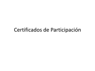 El documento explica lo que son los Certificados de Participación (C de P), los cuales son títulos de crédito que representan el derecho a una parte de los frutos, rendimientos o propiedad de los bienes fideicomitidos. Los C de P pueden ser ordinarios o inmobiliarios dependiendo del tipo de bienes subyacentes. El documento también describe los requisitos, características y partes involucradas en la emisión y administración de los C de P.