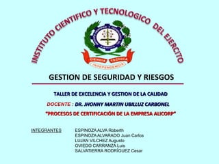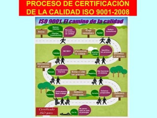 Este documento resume el proceso de certificación de calidad ISO 9001 que está implementando la empresa Alicorp en Perú. Describe las etapas de desarrollo del proyecto de certificación, mapeo de procesos, determinación de la política y objetivos de calidad, y desarrollo del manual de calidad. También presenta los organizigramas actual y propuesto de la empresa, así como detalles sobre la política de calidad, objetivos y acciones planificadas.