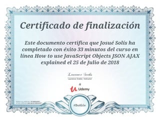 Certificado de finalización - How to use JavaScript Objects JSON AJAX explained