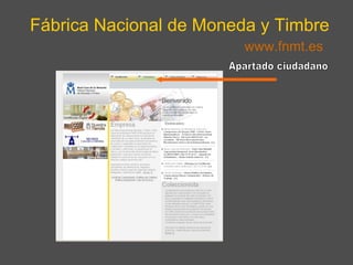 El documento proporciona instrucciones para solicitar un certificado digital a través de la página web de la Fábrica Nacional de Moneda y Timbre de España. Explica los tres pasos para obtener el certificado: 1) realizar la solicitud en línea, 2) acreditar la identidad en persona, y 3) descargar el certificado digital. También incluye instrucciones para exportar las claves pública y privada del certificado a un soporte extraíble para su copia de seguridad.