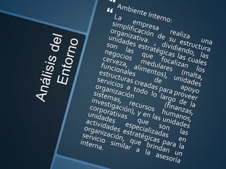 1) La Cervecería Polar tiene como misión satisfacer las necesidades de sus diversos grupos de interés a través de productos de alta calidad para contribuir al desarrollo del país. 2) Su visión es ser líder en alimentos y bebidas en Venezuela y América Latina a través de adquisiciones estratégicas que generen valor para los accionistas. 3) Dirige sus productos a diferentes segmentos de mercado como la cerveza Polar Ice para jóvenes de 18 a 30 años y la cerveza Polar Pilsen para consumidores tradicionales.