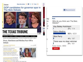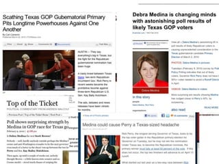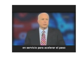 El documento compara las cualidades y experiencia de dos candidatos, Candidato A y Candidato B. Candidato A tiene más años de experiencia política y un historial de apoyo a la comunidad latina y al comercio con América Latina, mientras que Candidato B tiene menos experiencia y apoyo. El documento analiza cómo los candidatos deberían posicionarse y comunicar sus mensajes para ganar diferentes tipos de votantes.