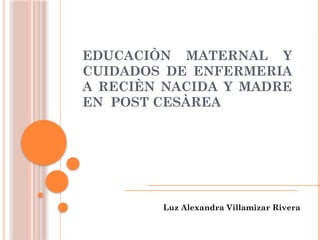 nutricionales, higiene personal (post cesárea) y cuidados a la